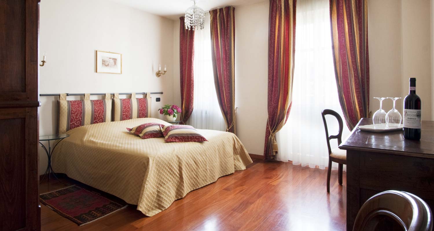 Tutte le camere sono ampie, luminose, arredate con mobili d’epoca della tradizione piemontese, fornite di televisore con decoder digitale, frigo bar e connessione wi-fi e dotate di bagno con doccia. Sono a vostra disposizione due camere al piano terra con accesso diretto al giardino e tre camere al piano primo con balcone; due delle camere, una al piano terra e una al piano primo, possono essere chieste con letti singoli separati.
