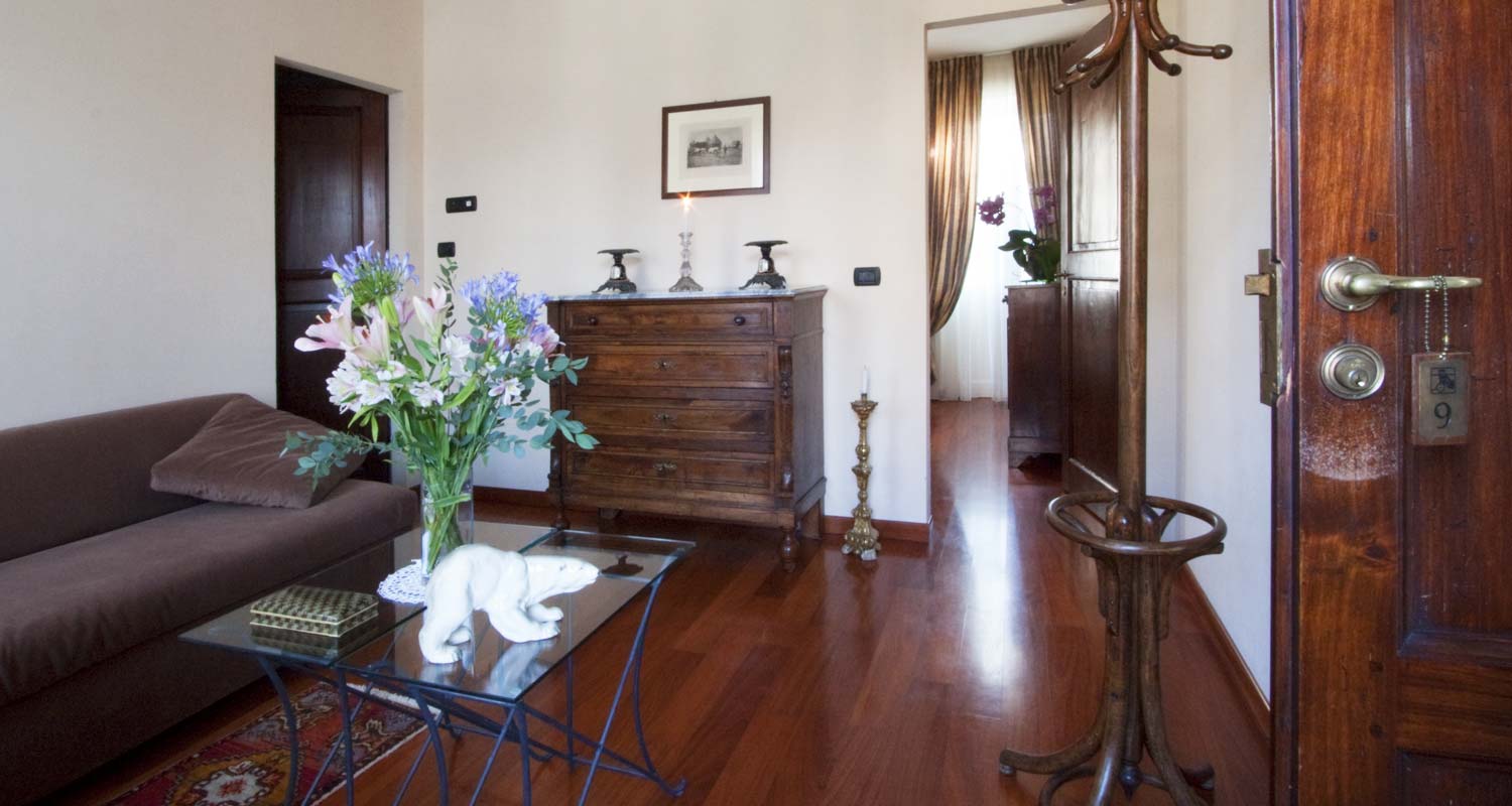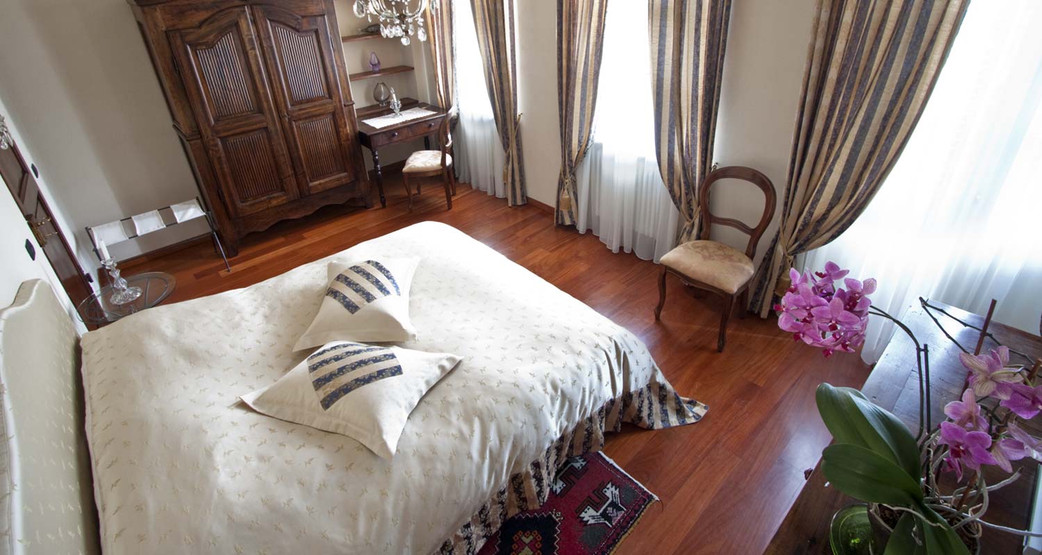 Le due suite sono la soluzione ideale per chi vuole soggiornare più comodamente o per le famiglie con bambino/i; esse infatti sono composte da ampia camera con letto matrimoniale, salotto (con divano letto matrimoniale) , bagno e antibagno con accesso indipendente da entrambi gli ambienti. E’ possibile scegliere tra piano terra con accesso diretto al giardino e piano primo con balcone. Arredate con mobili d’epoca e fornite di televisore con decoder digitale, frigo bar e connessione wi-fi rendono l’ambiente confortevole e di charme.